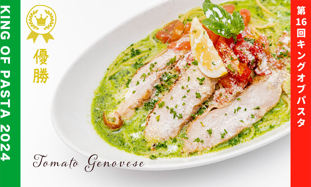トマトとバジルが爽やかに香る、旨みが凝縮された秘伝のスープパスタ。